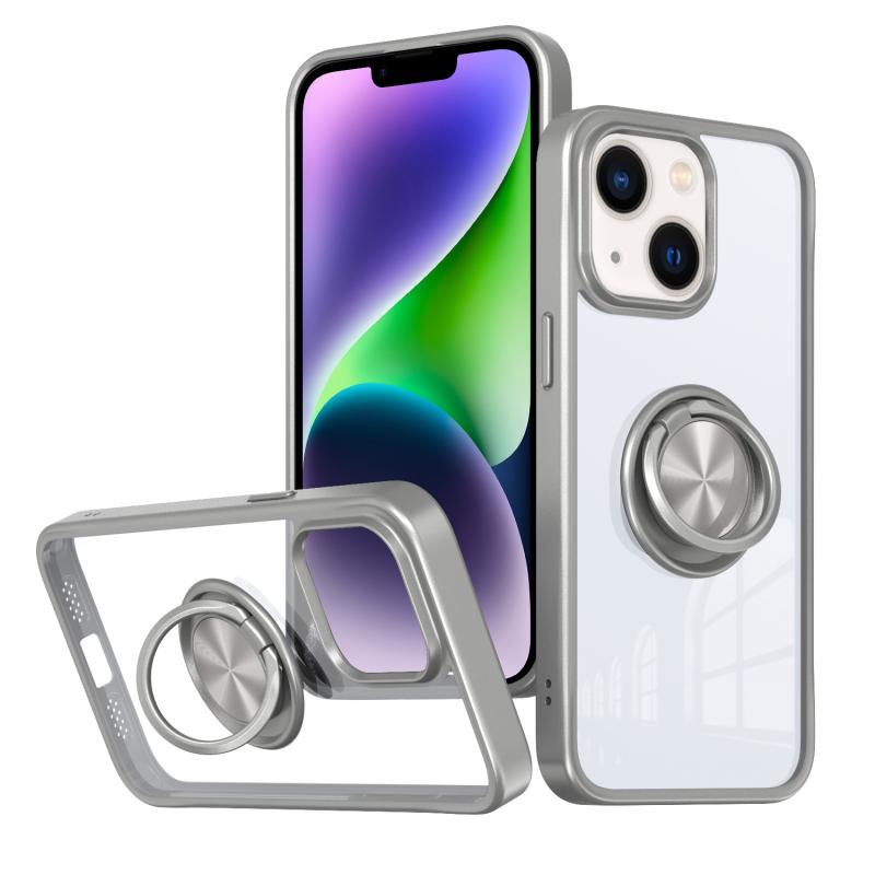 For iPhone 14 Ring Holder PC Hybrid TPU Phone Case(Grey)