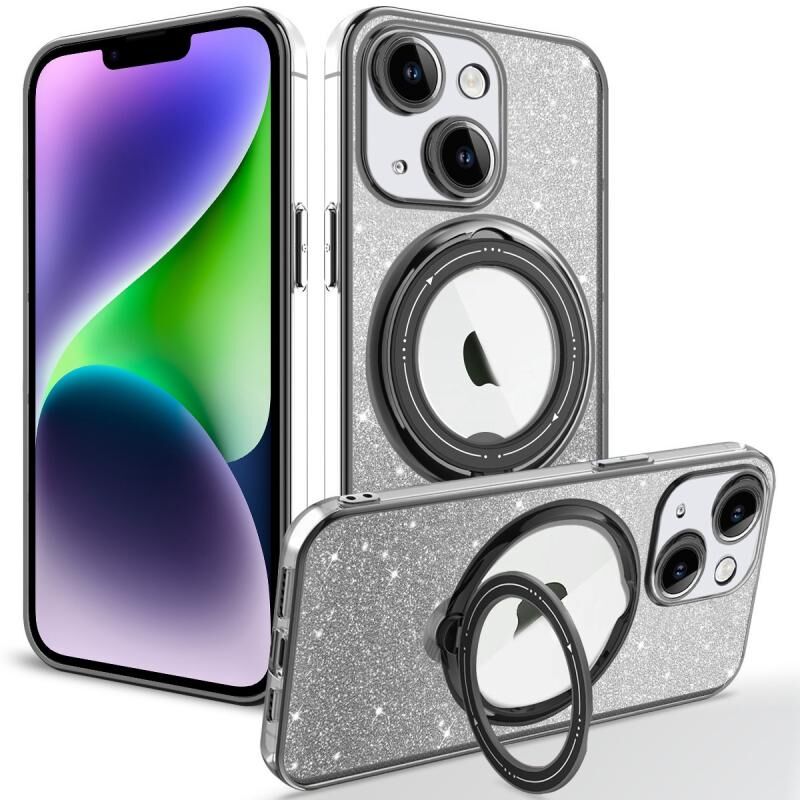 For iPhone 14 Rotation MagSafe Holder Gradient Glitter TPU Phone Case(Black)