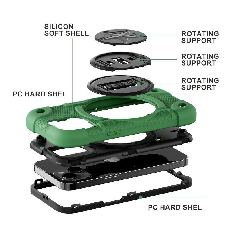1. Υλικό: Κατασκευασμένο από σκληρά καλύμματα PC 2 στρώσεων και ένα μαλακό εξωτερικό κέλυφος σιλικόνης, παρέχει ολοκληρωμένη προστασία.