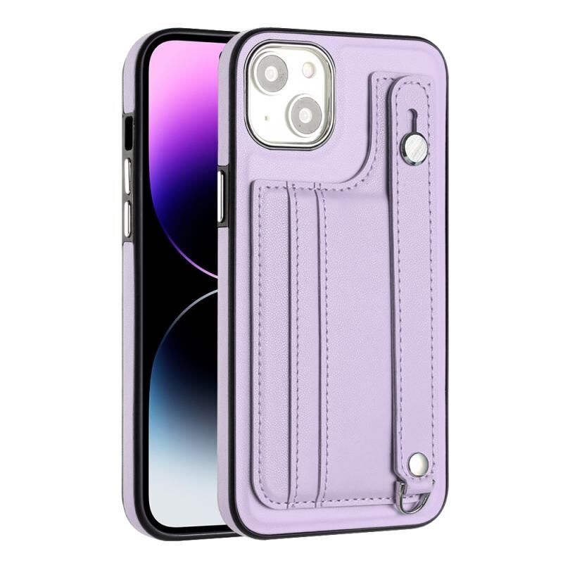 Θήκη για iPhone 14 ανθεκτική στις κρούσεις από δέρμα με λουρί καρπού (Μωβ)
