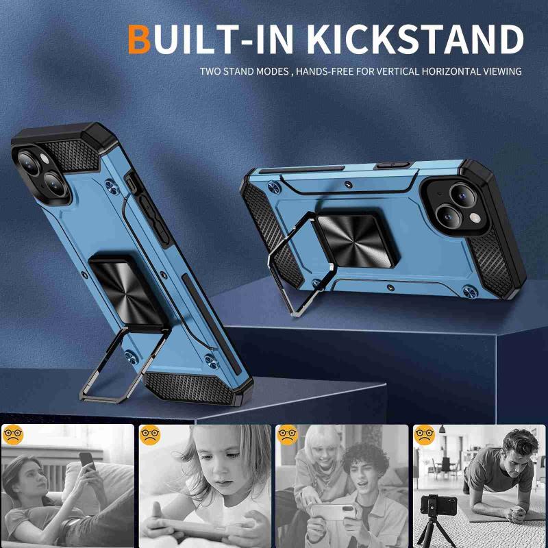 Θήκη iPhone 14 ανθεκτική με μεταλλική βάση στήριξης (Ναυτικό Μπλε)