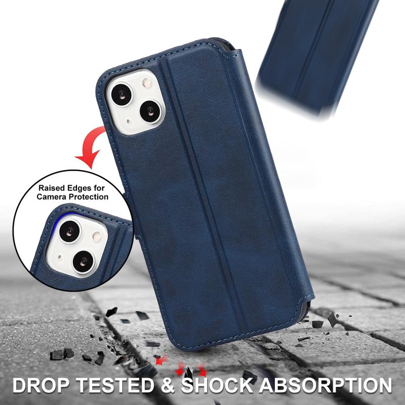 For iPhone 14 Shockproof PU + TPU Leather Phone Case(Dark Blue)