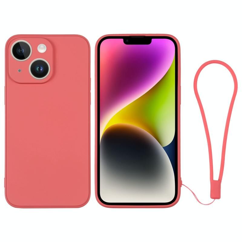 Θήκη σιλικόνης για iPhone 14 με λουρί καρπού (πορτοκαλί-κόκκινο)