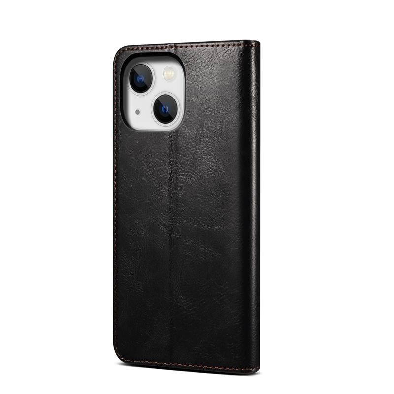 Θήκη δέρματος οριζόντιας αναδίπλωσης για iPhone 14, απλή, με τρελό άλογο και υφή κεριού (Σκούρο Πράσινο)