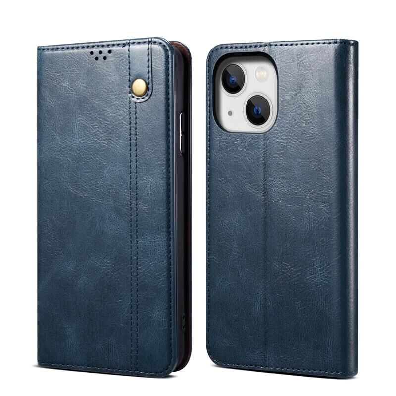 Θήκη δέρματος οριζόντιας αναδίπλωσης για iPhone 14, απλή, με τρελό άλογο και υφή κεριού (Σκούρο Πράσινο)