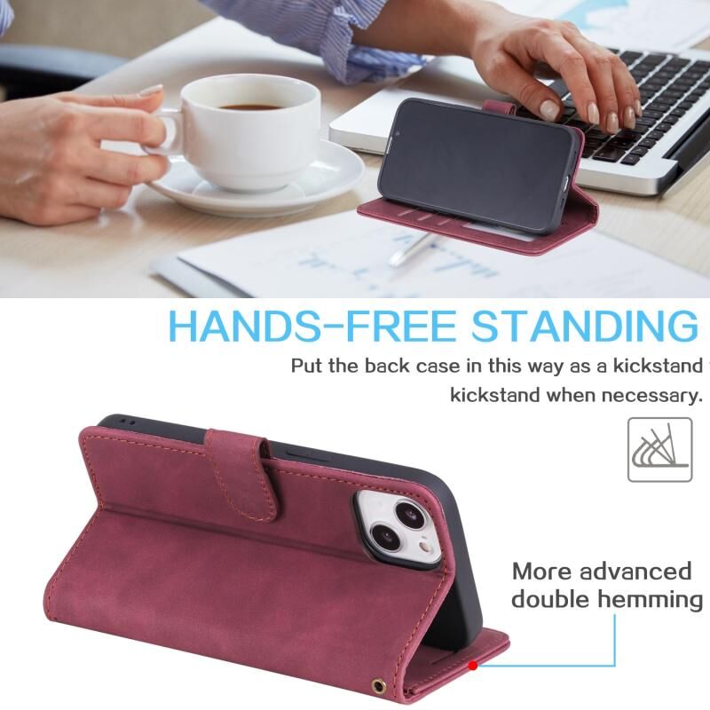 Θήκη τηλεφώνου δέρμα τύπου flip οριζόντια με αίσθηση δέρματος, αντι-κλοπής για iPhone 14 (Καφέ)