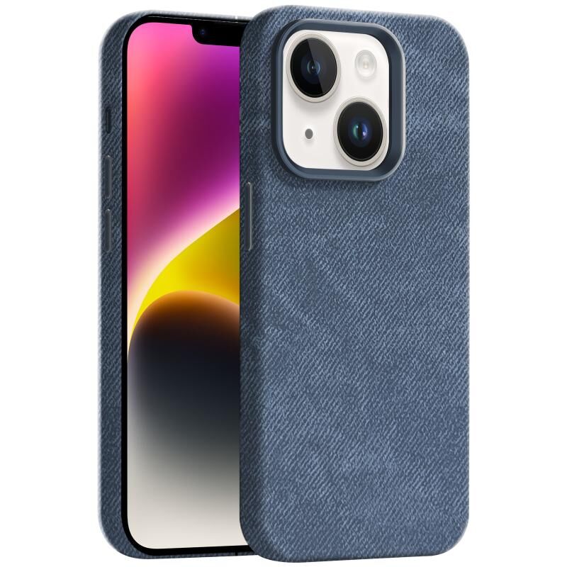 Θήκη τηλεφώνου MagSafe για iPhone 14 με υφή δέρματος denim (Ανοιχτό Μπλε)