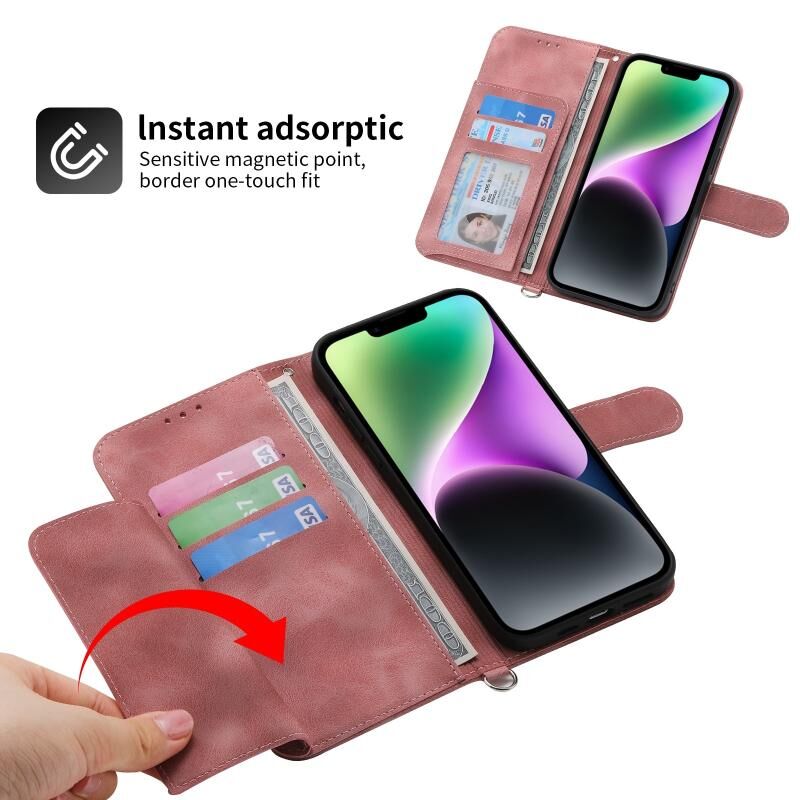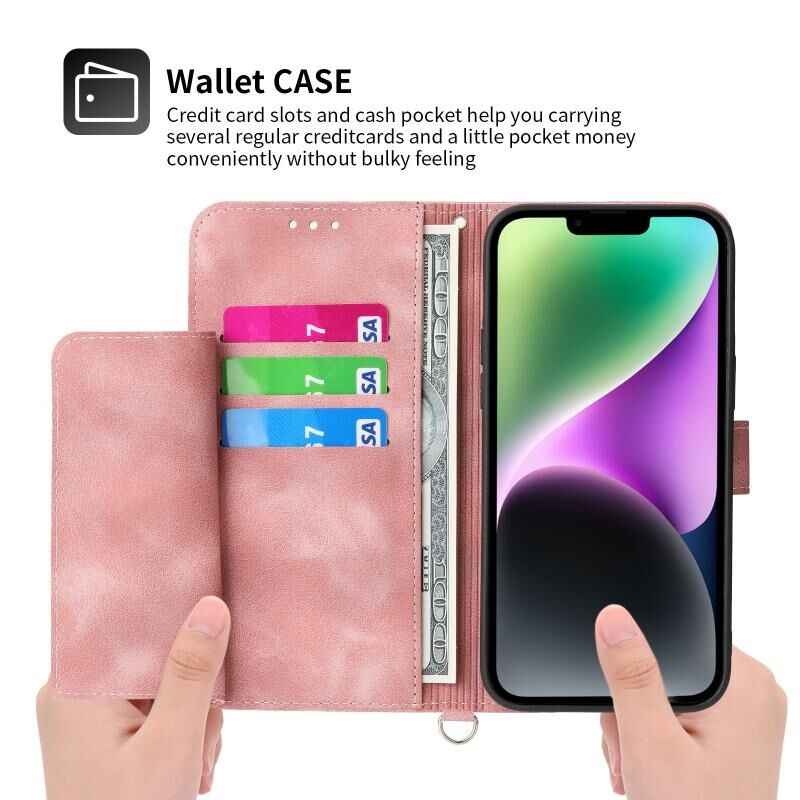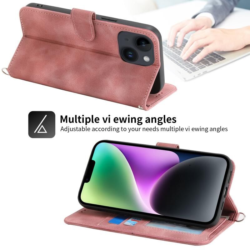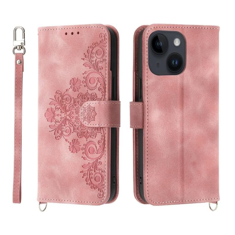 Θήκη τηλεφώνου από δέρμα με ανάγλυφα λουλούδια και αίσθηση δέρματος για iPhone 14 (Ροζ)