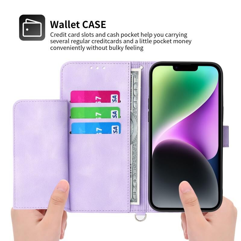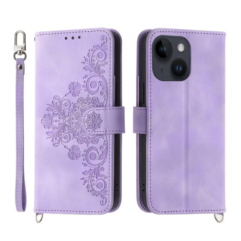Θήκη τηλεφώνου από δέρμα με ανάγλυφα λουλούδια και αίσθηση δέρματος για iPhone 14 (Ροζ)