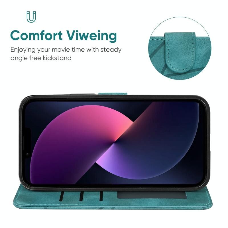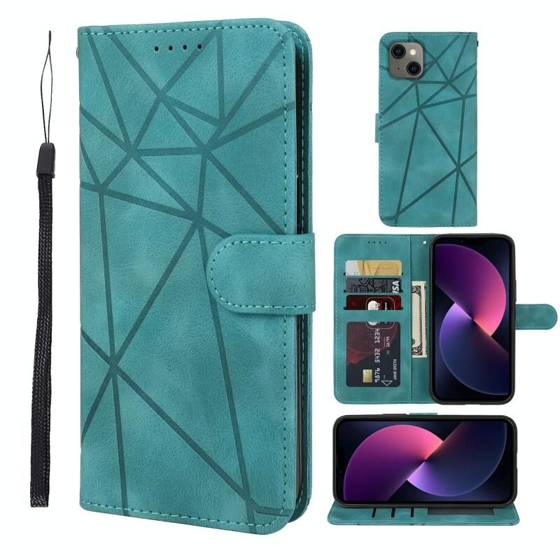 Θήκη τηλεφώνου από δέρμα με γεωμετρικά σχέδια και αίσθηση δέρματος για iPhone 14 (Πράσινο)