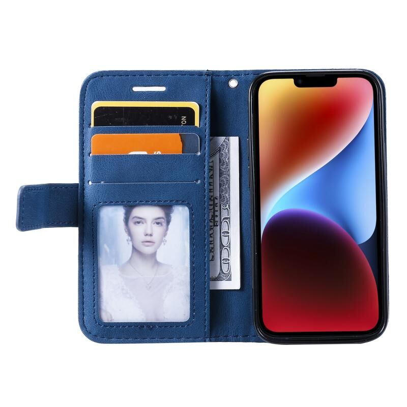 Θήκη τηλεφώνου από δέρμα με αίσθηση αφής για iPhone 14 (Μπλε)