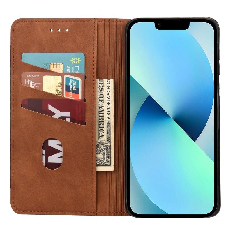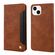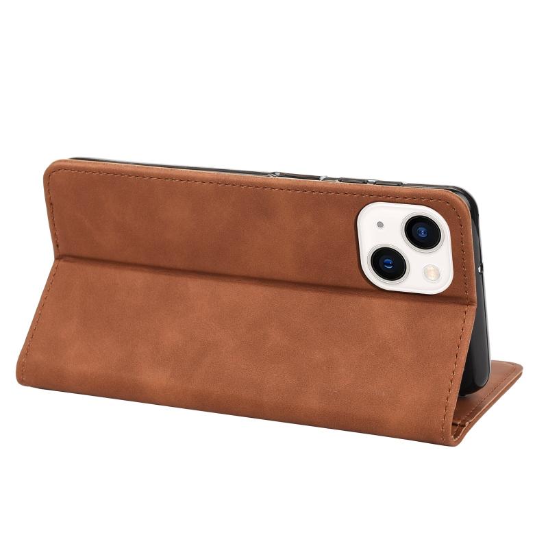 For iPhone 14 Skin Feel Splicing Leather Phone Case (Brown)