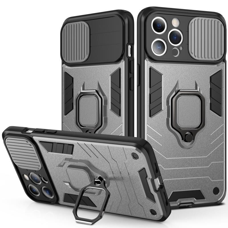 Θήκη κινητού για iPhone 14 με σχεδιασμό ολισθαίνουσας κάμερας, κατασκευασμένη από TPU + PC (Μαύρο)
