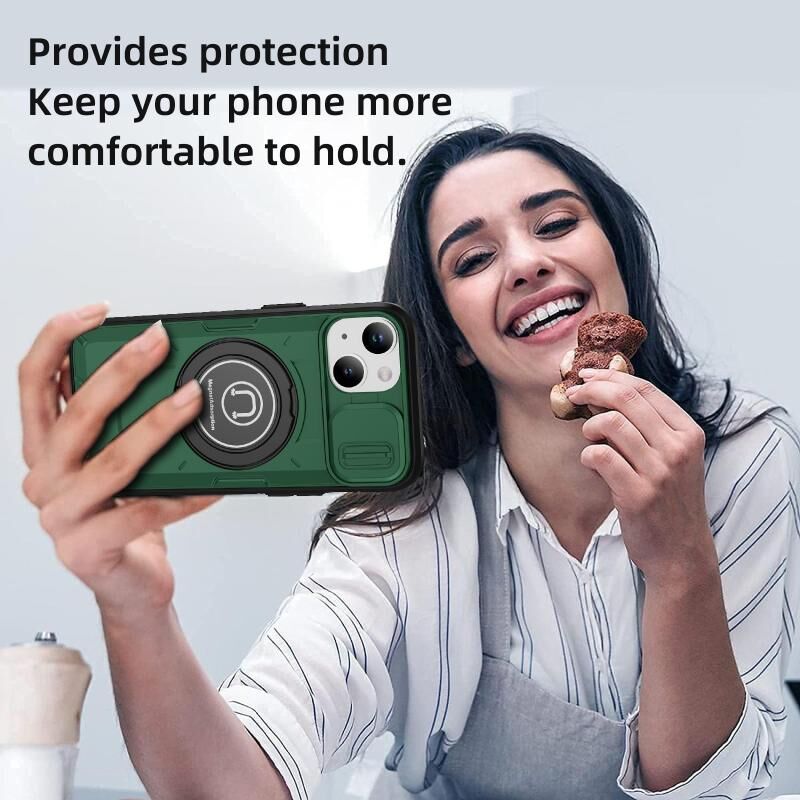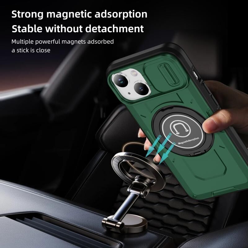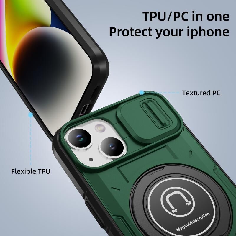 For iPhone 14 Sliding Camshield TPU Hybrid PC Magnetic Holder Phone Case(Dark Green)