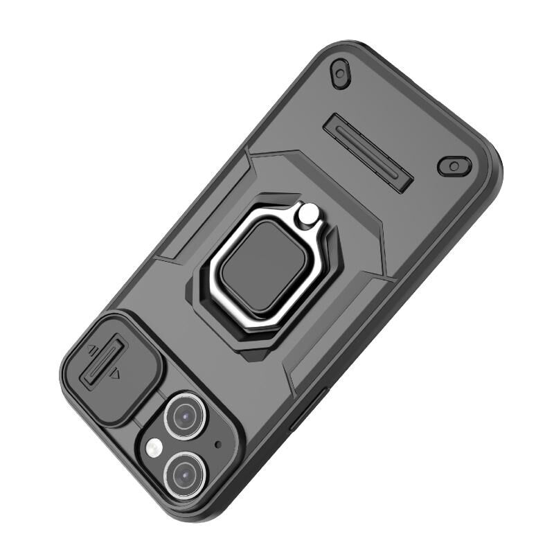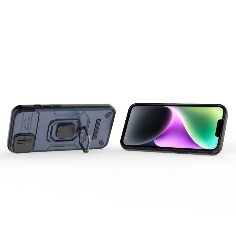 Θήκη κινητού τηλεφώνου για iPhone 14 με ολισθαίνουσα προστασία κάμερας Camshield, κατασκευασμένη από TPU + PC, ανθεκτική σε κρούσεις, με βάση στήριξης (Γκρι)