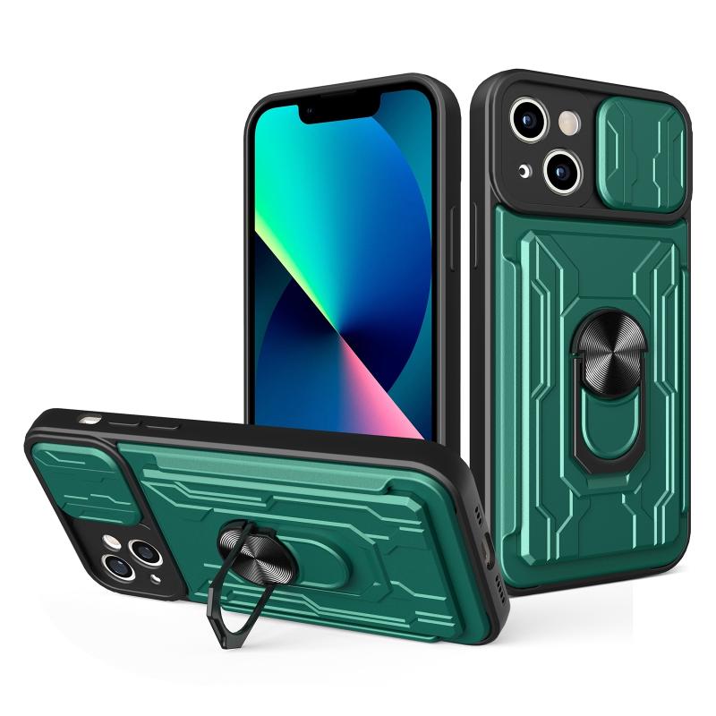 Θήκη κινητού τηλεφώνου για iPhone 14 με συρόμενο προστατευτικό κάμερας Camshield, κατασκευασμένη από TPU+PC με υποδοχή κάρτας (Περλέ Λευκό).