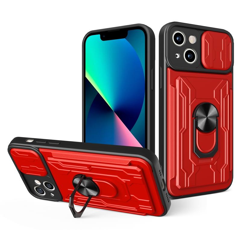 Θήκη κινητού τηλεφώνου για iPhone 14 με συρόμενο προστατευτικό κάμερας Camshield, κατασκευασμένη από TPU+PC με υποδοχή κάρτας (Περλέ Λευκό).