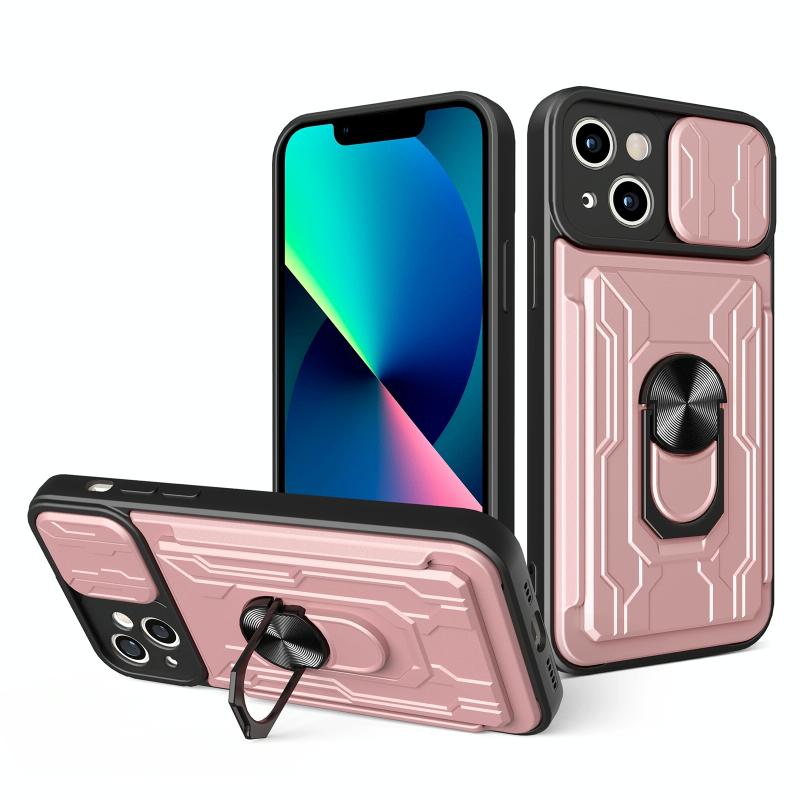 Θήκη κινητού τηλεφώνου για iPhone 14 με συρόμενο προστατευτικό κάμερας Camshield, κατασκευασμένη από TPU+PC με υποδοχή κάρτας (Περλέ Λευκό).