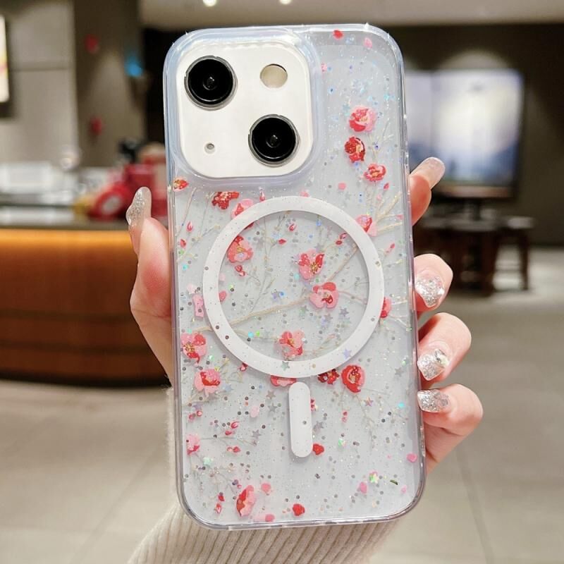 Θήκη τηλεφώνου TPU MagSafe για iPhone 14 Spring Garden (F03 Κόκκινο Δαμάσκηνο)