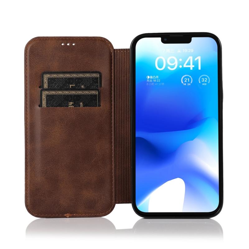 For iPhone 14 Strong Magnetic Closure PU + TPU Leather Phone Case(Brown)