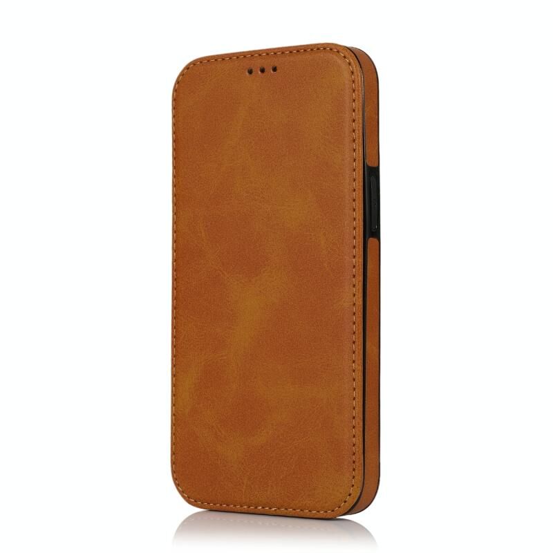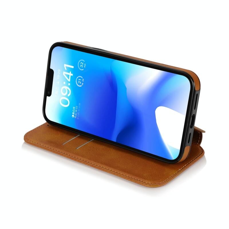 For iPhone 14 Strong Magnetic Closure PU + TPU Leather Phone Case(Khaki)