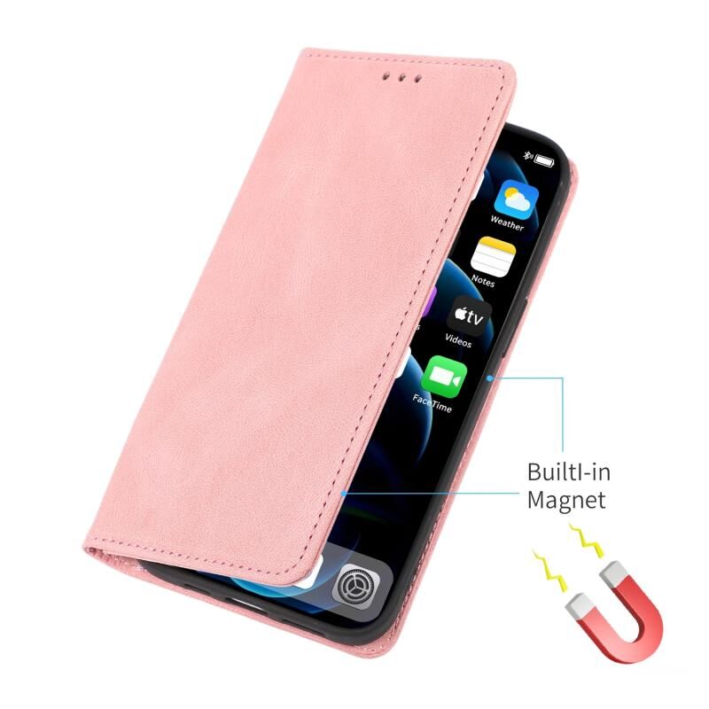 Θήκη Δερμάτινη με Ισχυρό Μαγνήτη για iPhone 14 (Χρυσορόζ)