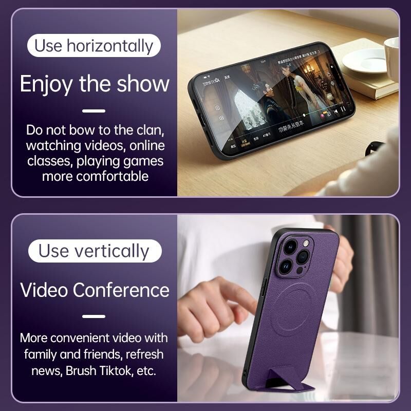 Θήκη κινητού τηλεφώνου SULADA για iPhone 14 με πτυσσόμενη βάση, υφή δέρματος αρνιού, συμβατή με MagSafe (Μωβ) (SULADA)