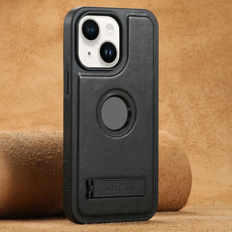 Θήκη Suteni G2 Magsafe με Δερμάτινη Υφή & Στήριξη για iPhone 14 (Black)