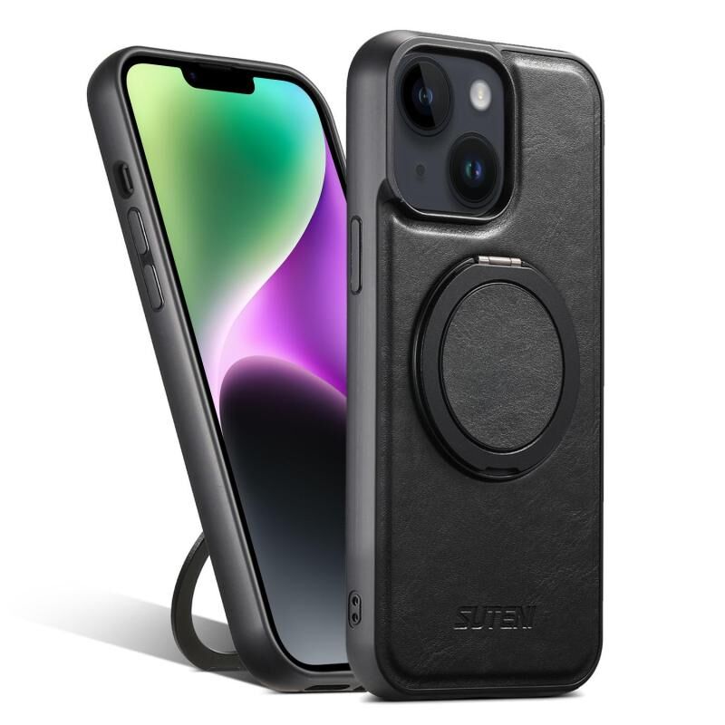 For iPhone 14 Suteni G3 Oil Wax 360 Rotation Holder MagSafe Back Phone Case(Black) (Suteni)