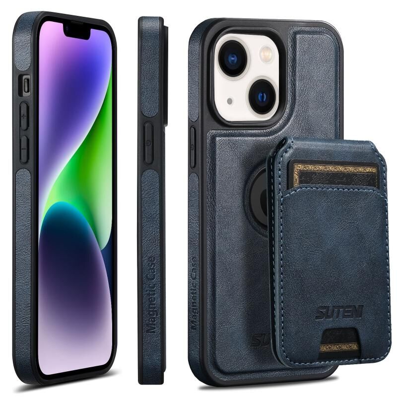 Θήκη τηλεφώνου Suteni M2 Oil Wax MagSafe Οριζόντια για κάρτες για iPhone 14 (Μπλε) (Suteni)