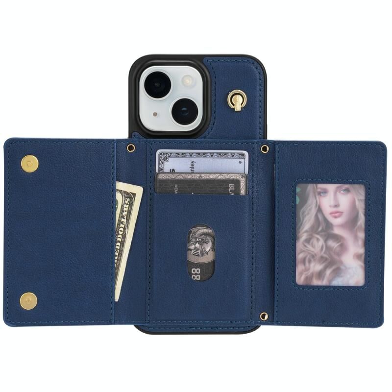 Θήκη τηλεφώνου για iPhone 14 με τριπλή κάρτα και μακρύ κορδόνι (Μαύρο)