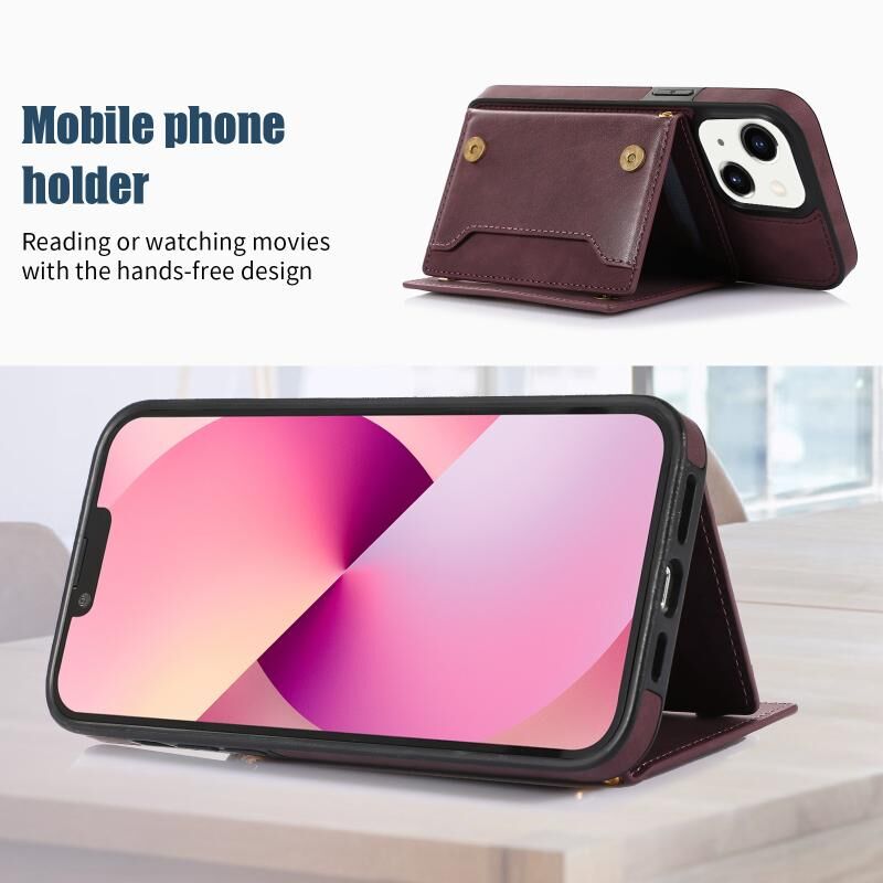 Θήκη τηλεφώνου από δέρμα με τριπλή προστασία RFID για iPhone 14 με κορδόνι (Μαύρο)