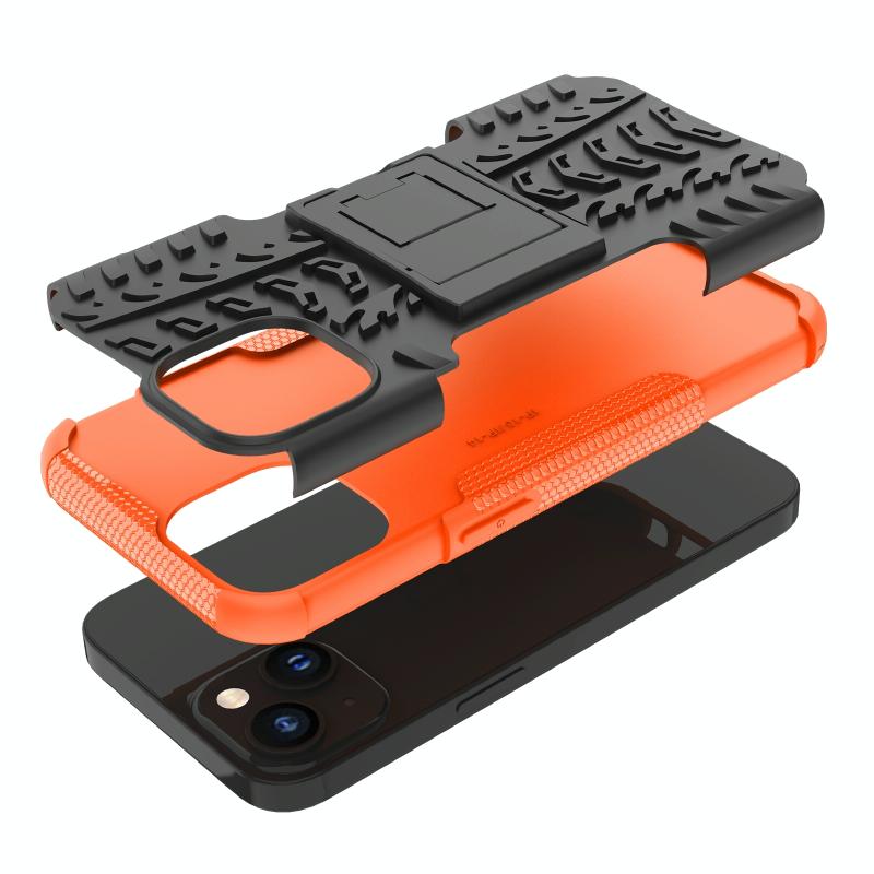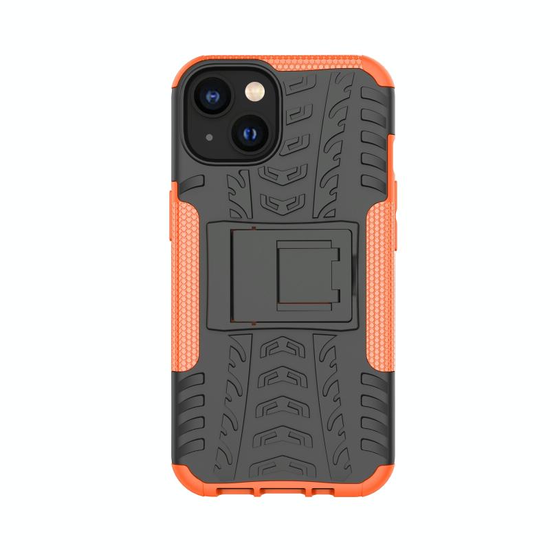 Θήκη κινητού για iPhone 14 με υφή ελαστικού + PC και βάση στήριξης (Πορτοκαλί)