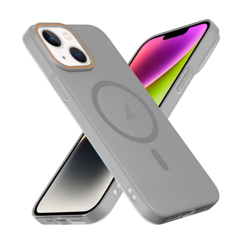 For iPhone 14 Translucent Frosted Skin PC MagSafe Phone Case(Grey)