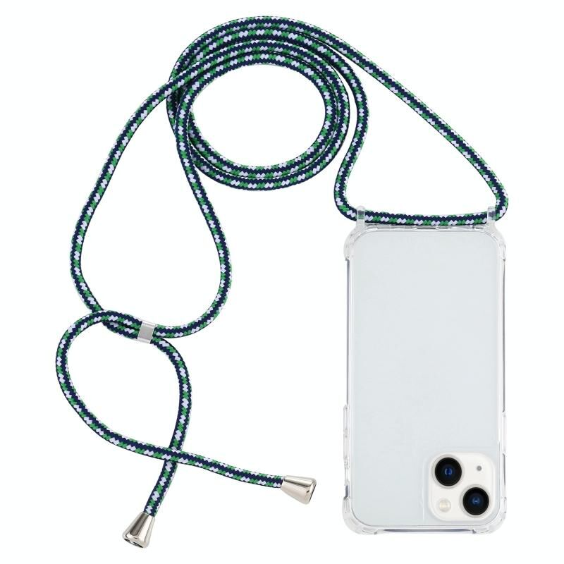 Θήκη προστασίας κινητού τηλεφώνου για iPhone 14, διαφανής ακρυλική, αντικραδασμική με αερόσακο και κορδόνι (Κίτρινο Ουράνιο Τόξο)