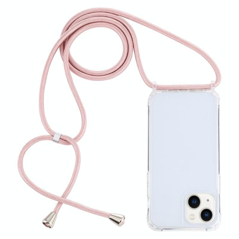 Θήκη προστασίας κινητού τηλεφώνου για iPhone 14, διαφανής ακρυλική, αντικραδασμική με αερόσακο και κορδόνι (Κίτρινο Ουράνιο Τόξο)