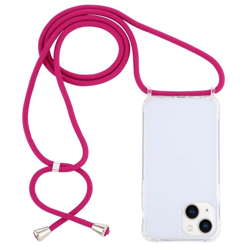 Θήκη προστασίας κινητού τηλεφώνου για iPhone 14, διαφανής ακρυλική, αντικραδασμική με αερόσακο και κορδόνι (Κίτρινο Ουράνιο Τόξο)