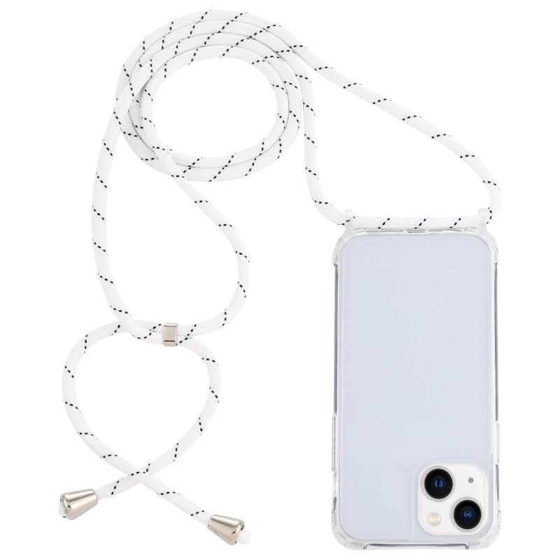 Θήκη προστασίας κινητού τηλεφώνου για iPhone 14, διαφανής ακρυλική, αντικραδασμική με αερόσακο και κορδόνι (Κίτρινο Ουράνιο Τόξο)