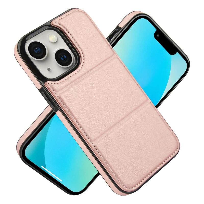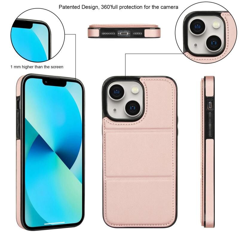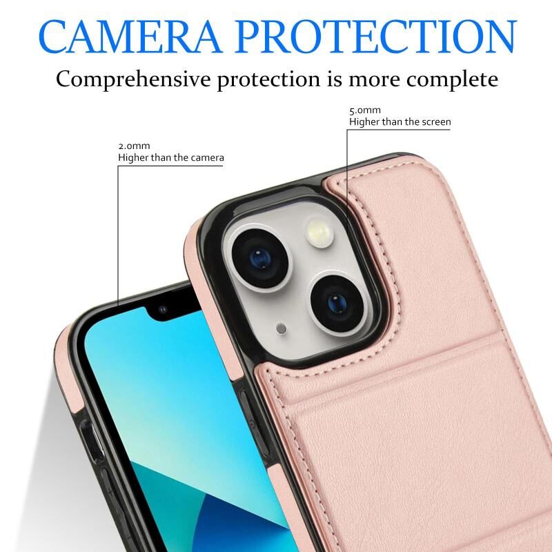 For iPhone 14 Tri-fold Holder Leather Phone Case with Card Slot(Rose Gold)