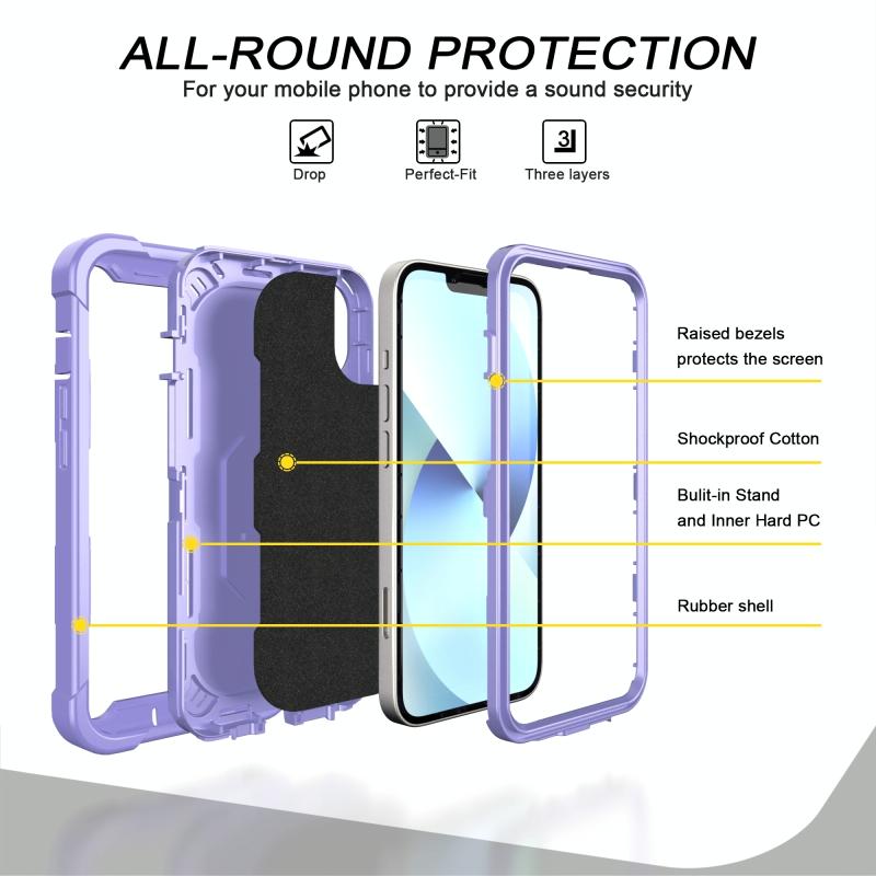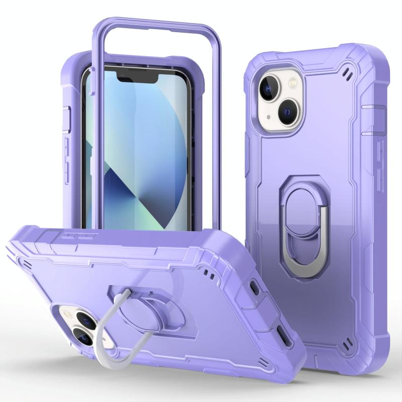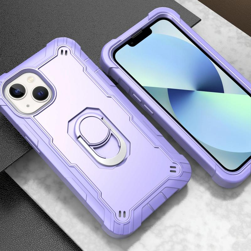 Θήκη iPhone 14 με Διπλό Χρώμα και Δακτύλιο Στήριξης (Μωβ)