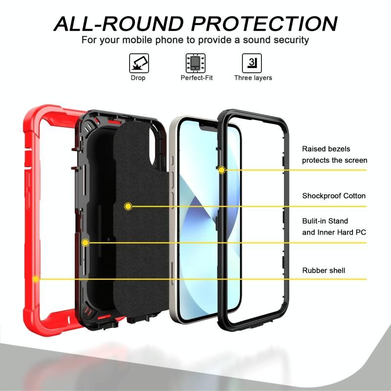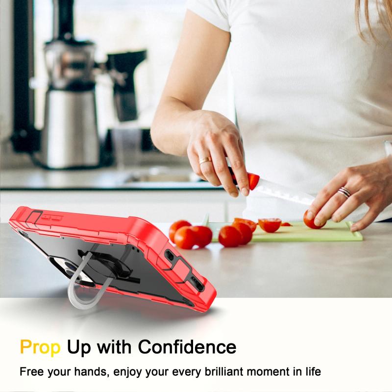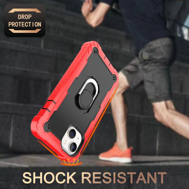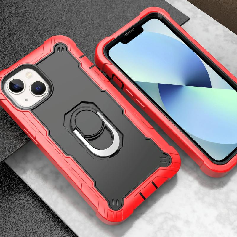 Θήκη iPhone 14 με Διπλό Χρώμα και Δακτύλιο Στήριξης (Κόκκινο + Μαύρο)