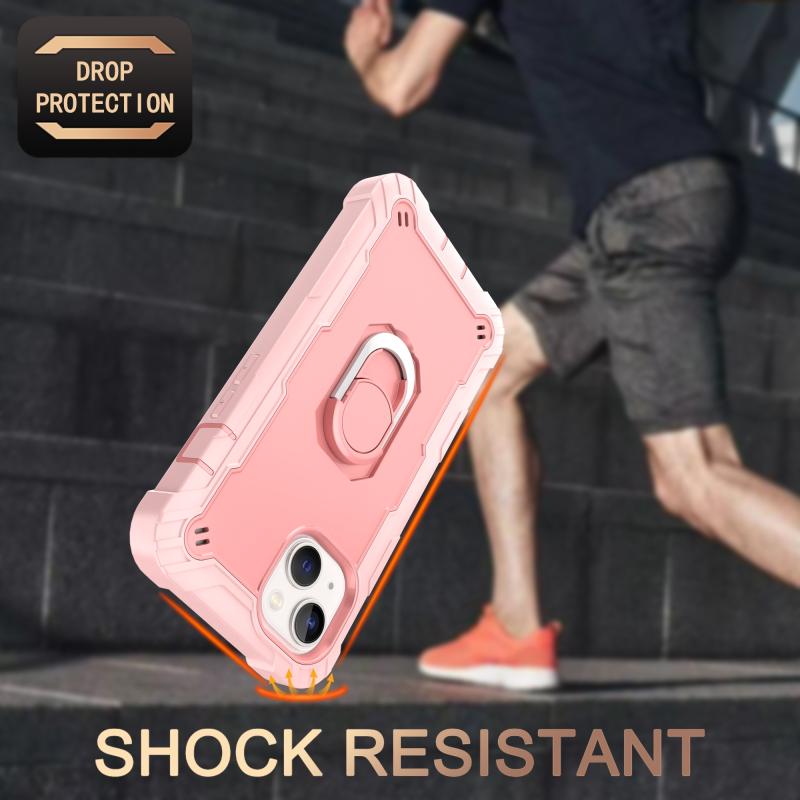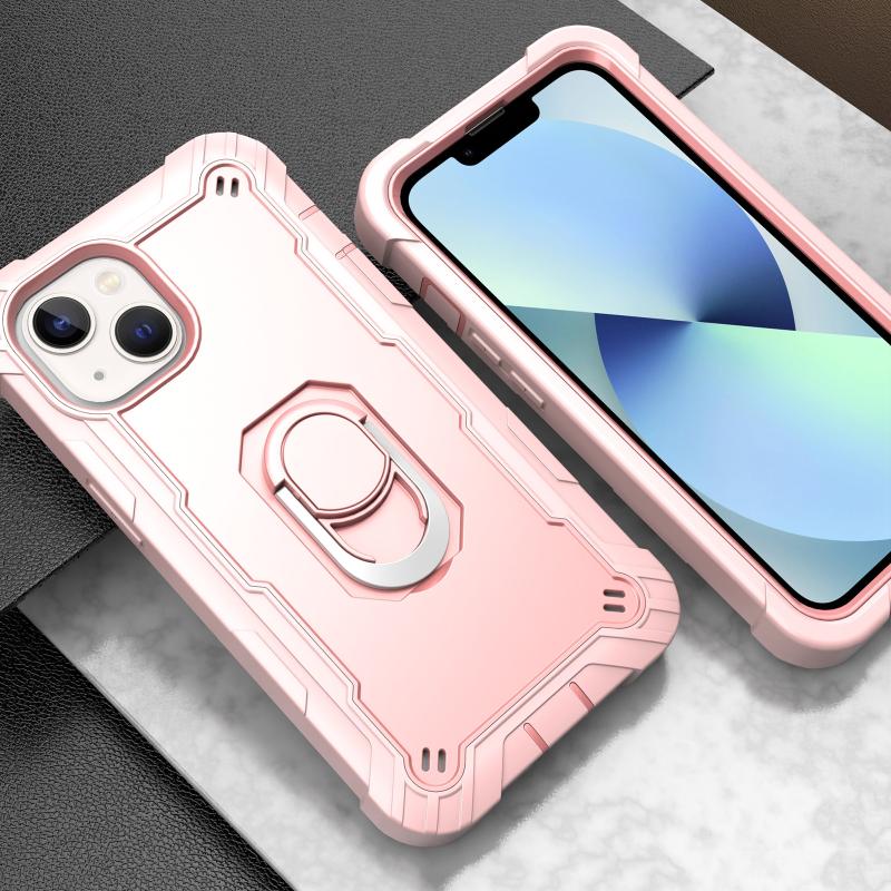 Θήκη iPhone 14 με Διπλό Χρώμα και Δακτύλιο Στήριξης (Ροζ Χρυσό)