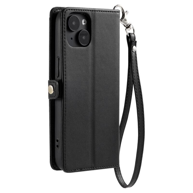 For iPhone 14 Wallet Multi-card Slot Leather Phone Case with Lanyard(Black)