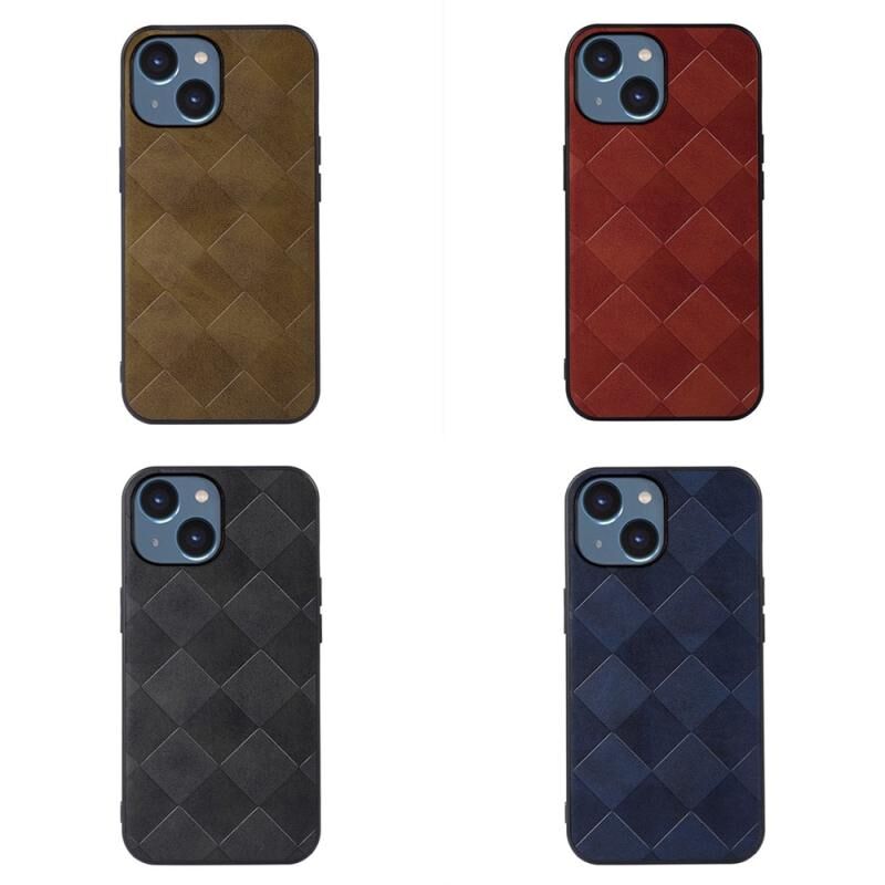 Θήκη τηλεφώνου για iPhone 14 με ύφανση καρό από PU (Μαύρο)