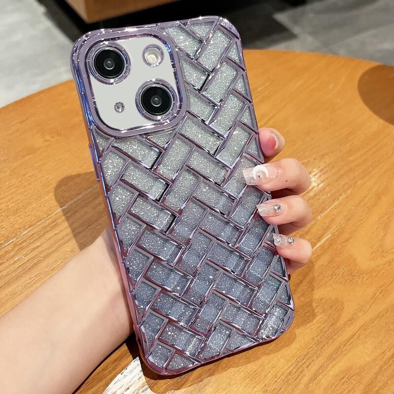Θήκη τηλεφώνου για iPhone 14, Υφαντή Γρίλια, 3D Ηλεκτροεπίχρυση, Λέιζερ Χαραγμένη, Γκλίτερ, Χαρτί (Μαύρο)