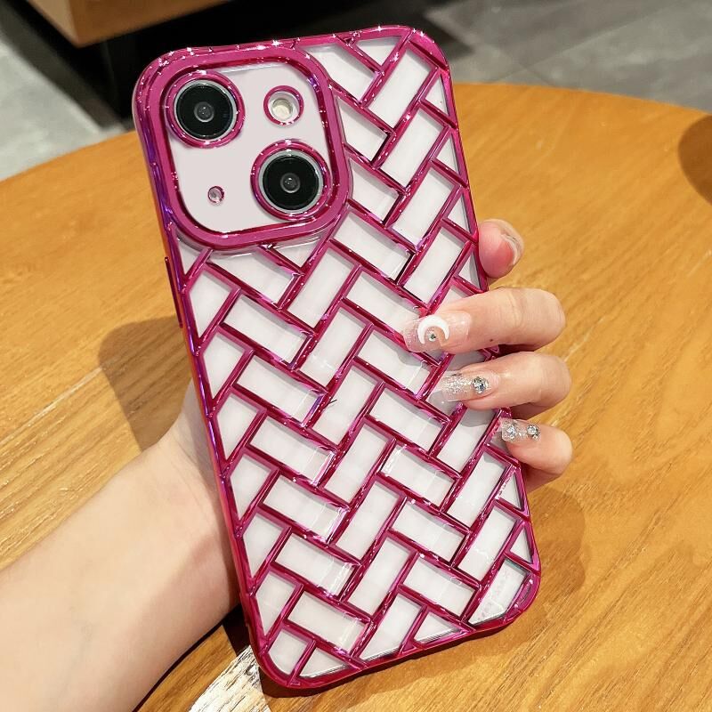 Θήκη τηλεφώνου για iPhone 14, Υφαντή Γρίλια, 3D Ηλεκτροεπίχρυση, Λέιζερ Χαρακτική (Μωβ)