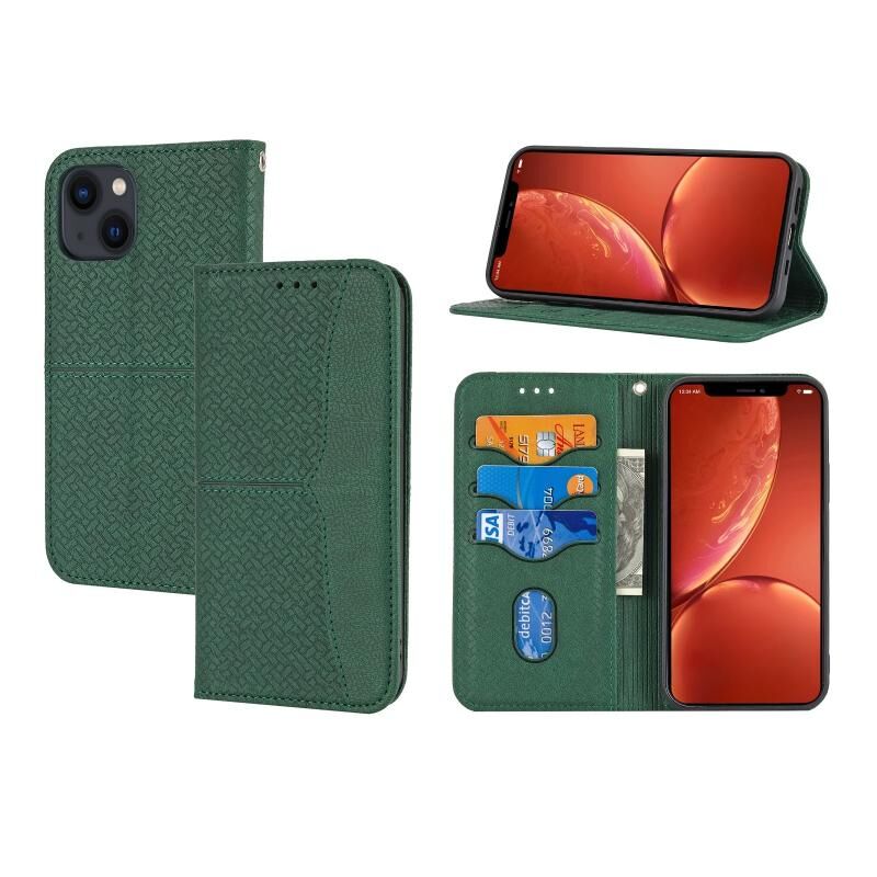 Θήκη δερμάτινη με υφαντή υφή για iPhone 14 (Πράσινο)