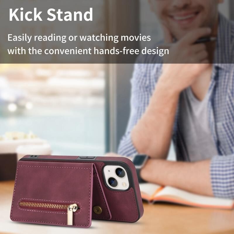 Θήκη κινητού τηλεφώνου με φερμουάρ και θήκη καρτών για iPhone 14 (Μαύρο)