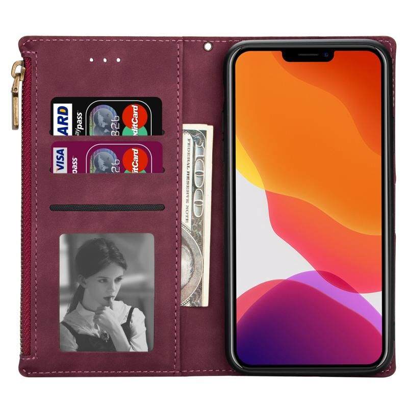 Θήκη δέρματος οριζόντιας αναδίπλωσης με φερμουάρ και πολλαπλές θήκες καρτών για iPhone 14 Max (Χρυσορόδινο)