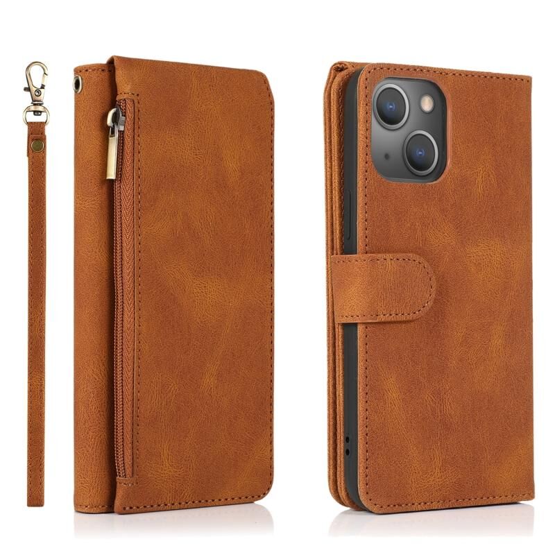 Θήκη πορτοφολιού με φερμουάρ για iPhone 14, Δερμάτινη (Σκούρο Πράσινο)